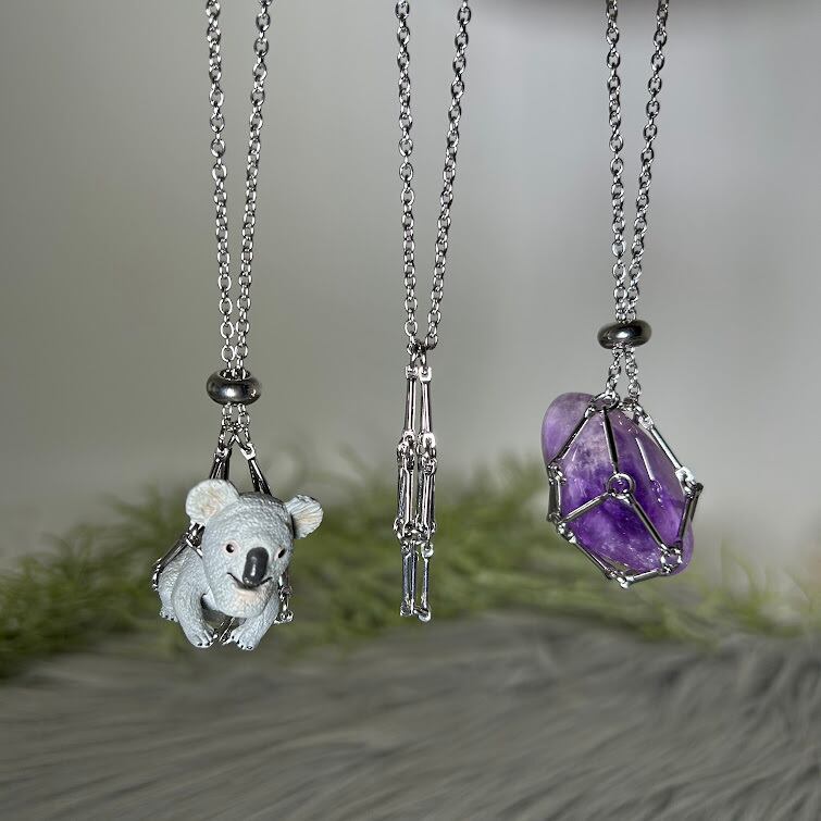 #メタルネットネックレス #チャームホルダー #ペンダントトップ #アクセサリー好き #毎日着せ替え #推し活アクセ #割れた石リメイク #小さいフィギュア #カスタムジュエリー #自分だけのアクセサリー #お守りアクセサリー #天然石 #踊るアクセサリー