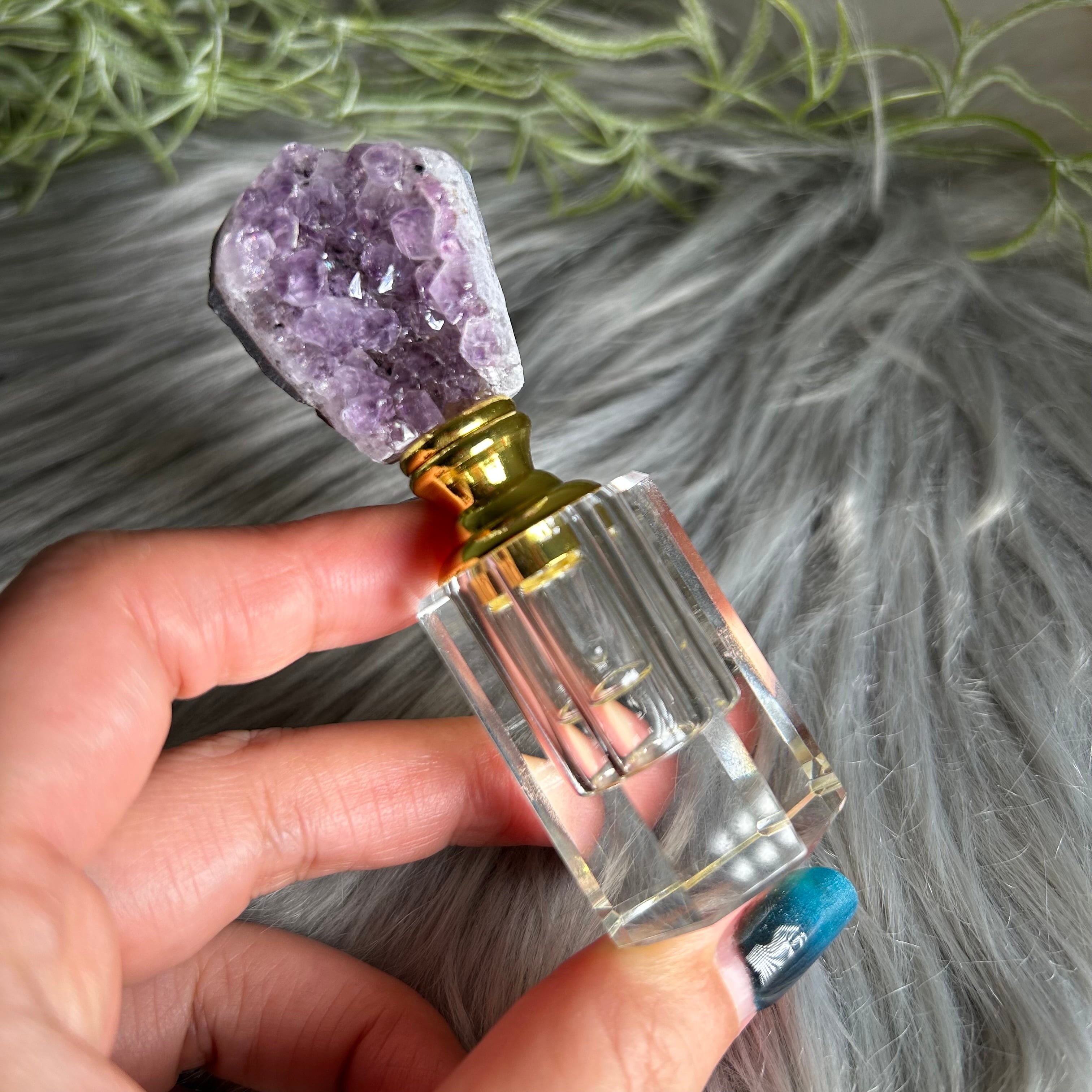 キャップに大きなアメジストクラスターが施された存在感抜群の香水瓶です。