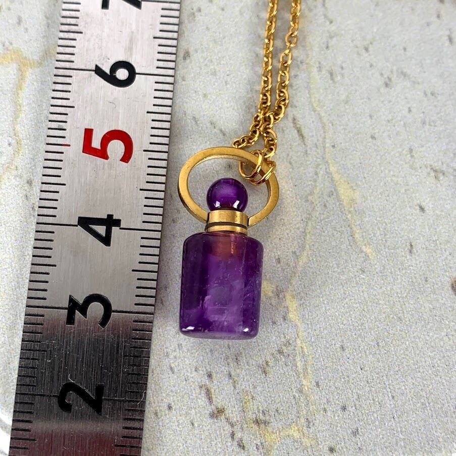 深い紫が美しいアメジストのミニ香水瓶ペンダント (192)