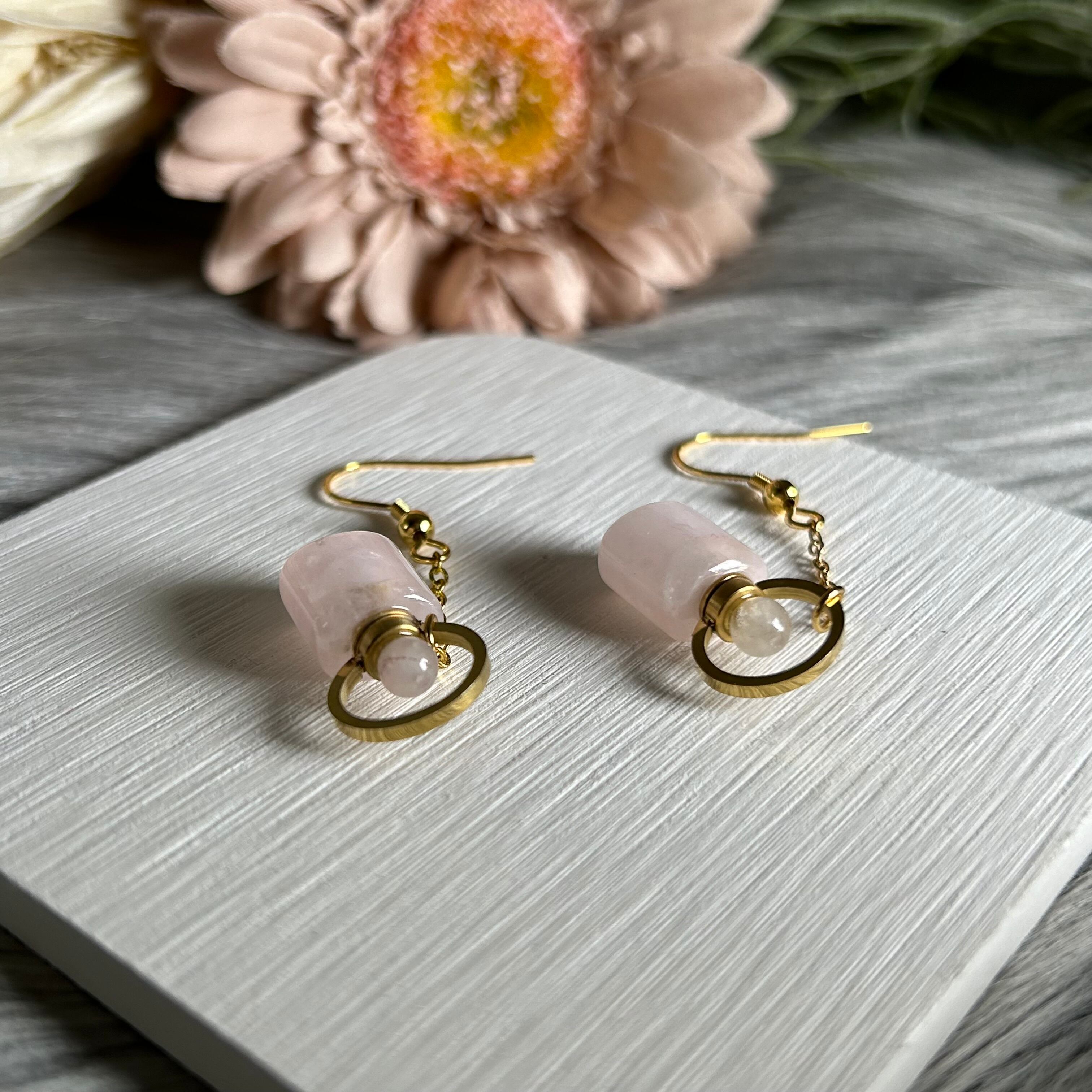 #ローズクオーツ #ローズクオーツアクセサリー #アロマオイル #アロマテラピー #ジュエリー #メモリーオイル #天然石 #パワーストーン #香水瓶 #アクセサリー #アロマ #アロマアクセサリー #アロマピアス #アロマボトル #香水瓶アクセサリー #天然石アクセサリー #パワーストーンアクセサリー #earrings #踊るアクセサリー